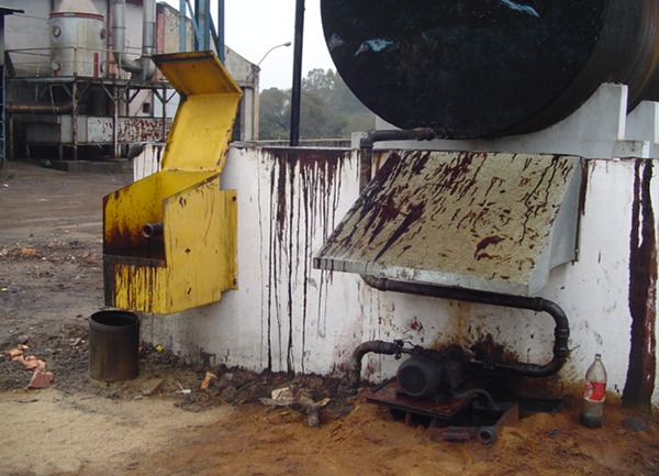 Imagem: Tanque de armazenagem de óleo com possíveis vazamentos, que podem contribuir com a contaminação do solo, e águas subterrâneas, no interior do RS.