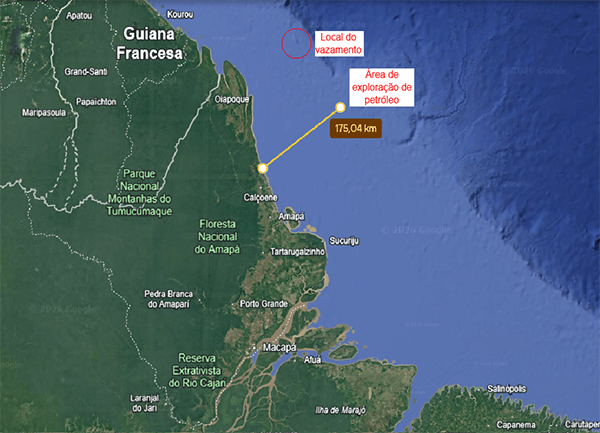 O vazamento de fluido ocorreu em 4 de janeiro, e aconteceu entre o poço Morpho, em processo de perfuração, e o navio-sonda, e isso acontece a cerca de 175 km da costa do Amapá.