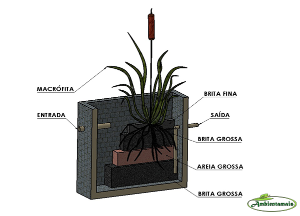 Imagem: Exemplo de composição básica de um modelo de Wetland. Fonte: Airton Noé Araujo da Silveira.