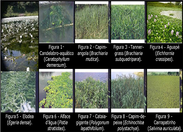 Imagem: Exemplares de macrófitas. Fonte: Infobios