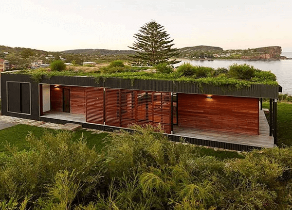 Imagem: Telhado verde cobrindo totalmente uma residência.